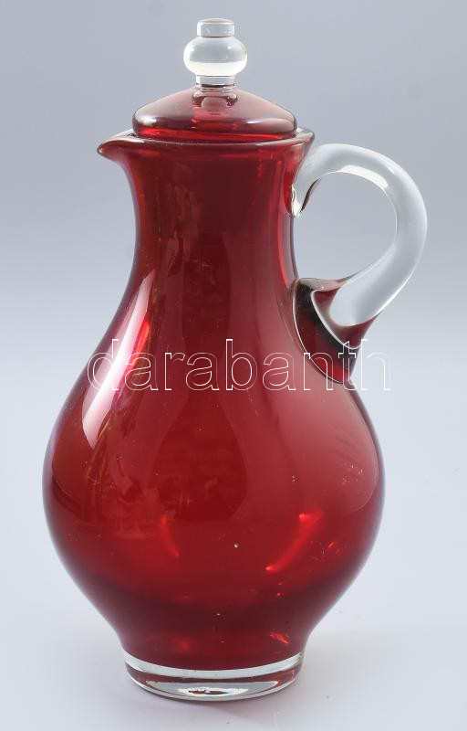 Beschreibung: Olasz bíborüveg fedeles kacsó. Fedélen kis pattanás, m: 24,5 cm