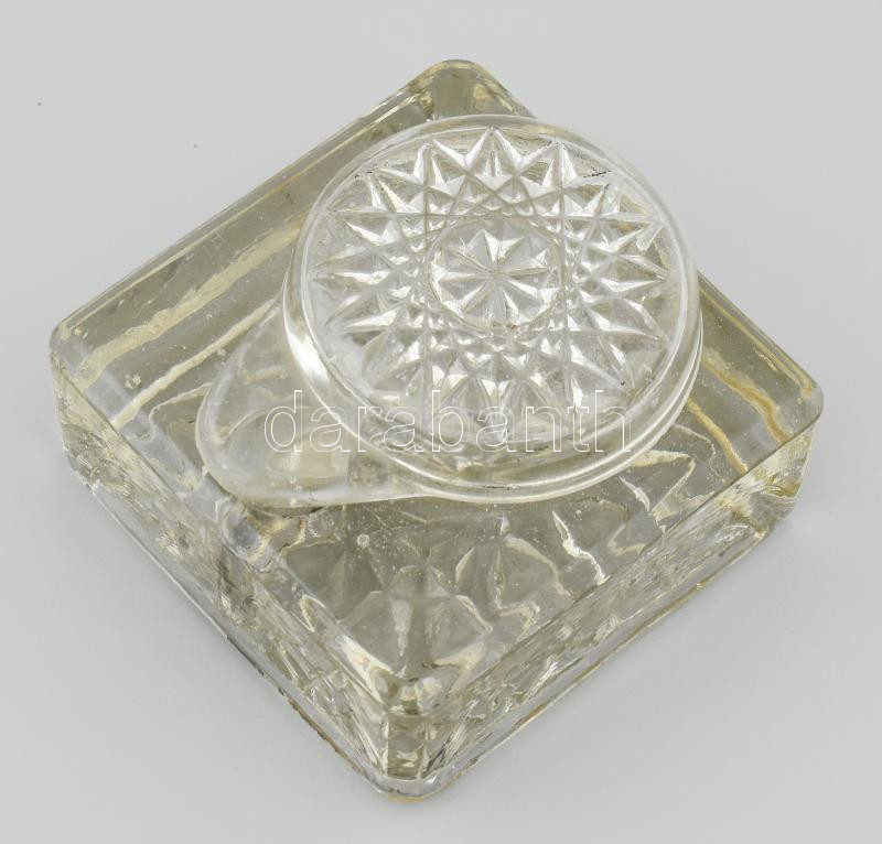 Üveg tintatartó, kupakkal, hibátlan, 8x8 cm https://www.darabanth.com/de/466-Fernauktion/466.0/Porzellan-Keramik-Glass/Glaser~7/Uveg-tintatarto-kupakkal-hibatlan-8x8-cm~II3126566