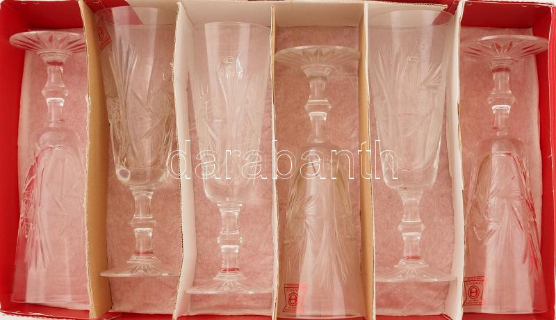Beschreibung: Zawiercie ólomkristály pezsgőspohár szett, 6 darab, címkével jelzett, hibátlan, dobozában, m: 18,5 cm
