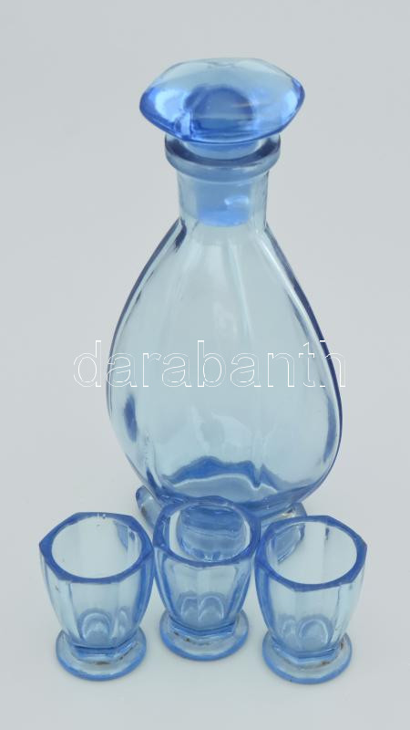 cca 1930, Kék art deco italos üveg, 3 pohárral, dugón pattogzással, m:... https://www.darabanth.com/de/466-Fernauktion/466.0/Porzellan-Keramik-Glass/Glaser~7/cca-1930-Kek-art-deco-italos-uveg-3-poharral-dugon-pattogzassal-m-20-cm-poharak-m-5-cm~II3145208