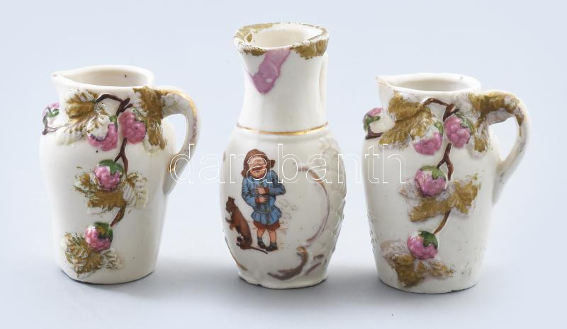 3 darab kis kiöntő. Ausztria 19. sz, vége, jelzett, kopott, m: 8-9 cm https://www.darabanth.com/de/466-Fernauktion/466.0/Porzellan-Keramik-Glass/Porzellan~6/3-darab-kis-kionto-Ausztria-19-sz-vege-jelzett-kopott-m-8-9-cm~II3140611