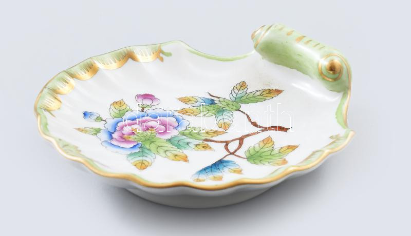 Beschreibung: Herendi Viktória mintás kagyló alakú ékszeres tálka. Jelzett, hibátlan, 10,5x10,5 cm