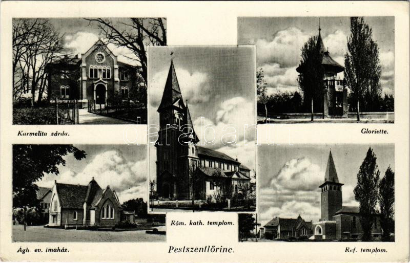 1939 Budapest XVIII. Pestszentlőrinc, Pusztaszentlőrinc, Szentlőrinc; Karmelita zárda, Gloriette, Ágostai evangélikus imaház, Római katolikus és Református templom (EK)