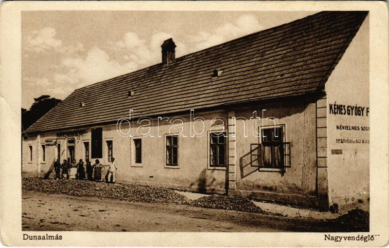 Dunaalmás, Nagyvendéglő és kénes gyógyfürdő. Kiadja Gábor Andor https://www.darabanth.com/de/467-Fernauktion/467.0/Ansichtskarten/Ungarn~2000005/Dunaalmas-Nagyvendeglo-es-kenes-gyogyfurdo-Kiadja-Gabor-Andor~II3133123