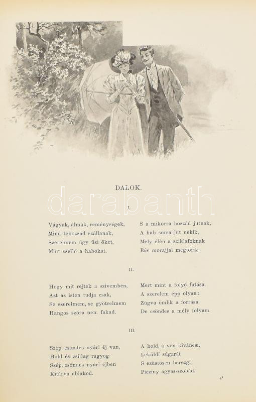 Költők albuma. Jelenkori magyar költők verseiből. Szerk.: Radó Antal. Harminczöt magyar festőművész képeivel. A Pesti Napló karácsonyi ajándéka előfizetőinek. Bp., é.n., Lampel Róbert (Wodianer F. és Fiai). Negyedik, módosított és bővített kiadás. Aranyozott egészvászon-kötés, a gerincen sérülésnyommal.