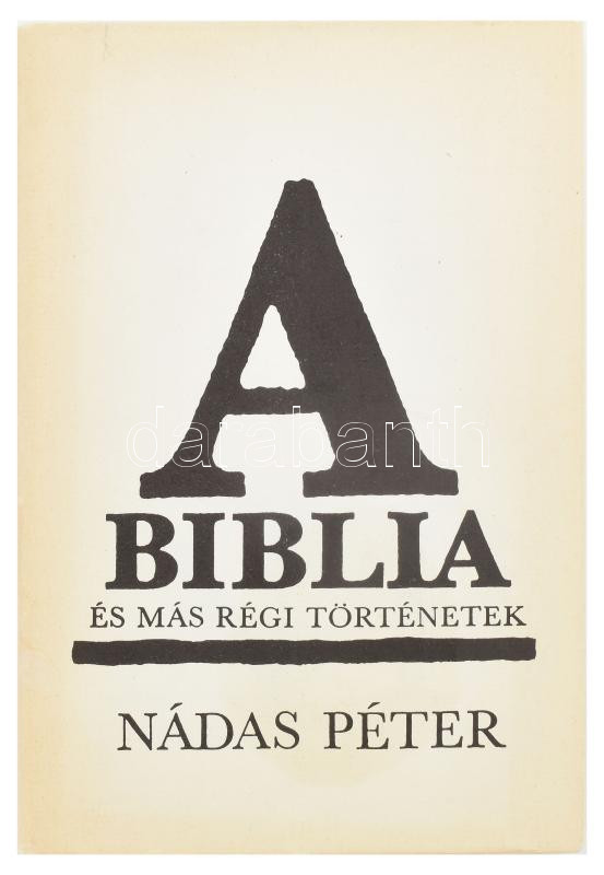 Nádas Péter: A Biblia és más régi történetek. Bp., 1988. Szépirodalmi ... https://www.darabanth.com/de/467-Fernauktion/467.0/Bucher/Bucher-Andere-kuriositaten~1000034/Nadas-Peter-A-Biblia-es-mas-regi-tortenetek-Bp-1988-Szepirodalmi-Konyvkiado-Kiadoi-kartonalt~II3119591