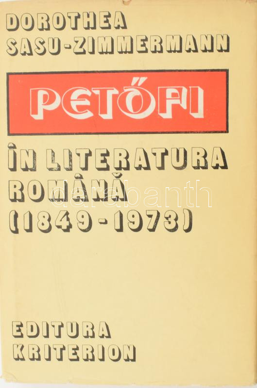 Sazu-Zimmermann, Dorothea: Petőfi in literatura Romana (1849-1973). Bukarest, 1980, Kriterion. Kiadói kartonált kötés, papír védőborítóval, kopottas állapotban.