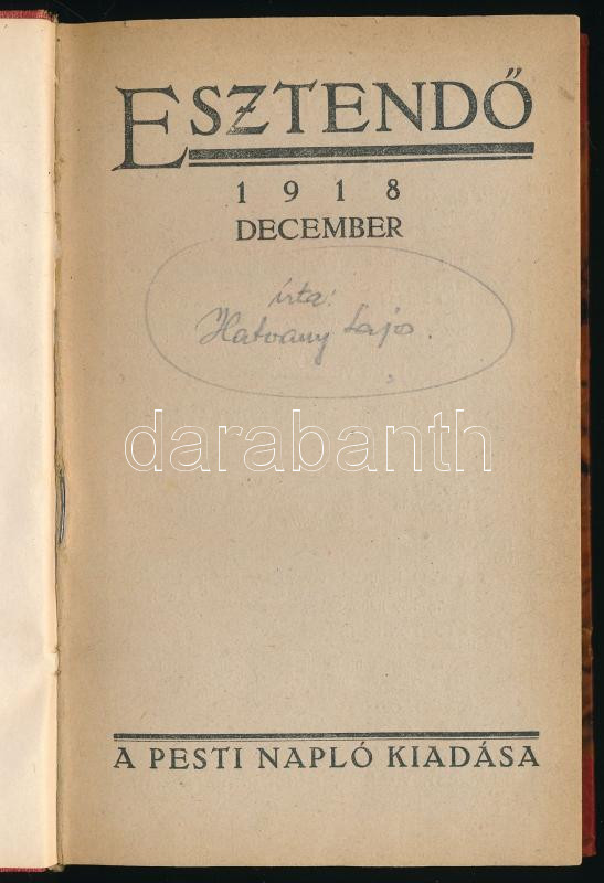 Hatvany Lajos: Egy hónap története. Esztendő 1918 december. Bp., é.n., Pesti Napló. Későbbi aranyozott gerincű félvászon-kötés, ceruzás jelölésekkel, néhány kevés lapon apró foltokkal.