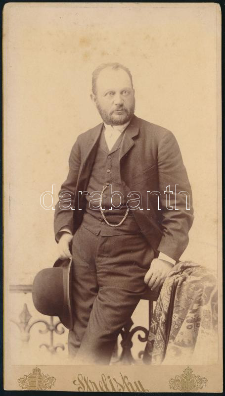 1895 Elegáns úr kalappal és óralánccal, kabinetfotó Strelisky budapest... https://www.darabanth.com/de/467-Fernauktion/467.0/Fotografie/Foto~500022/1895-Elegans-ur-kalappal-es-oralanccal-kabinetfoto-Strelisky-budapesti-mutermebol-alja-vagott-~II3156798