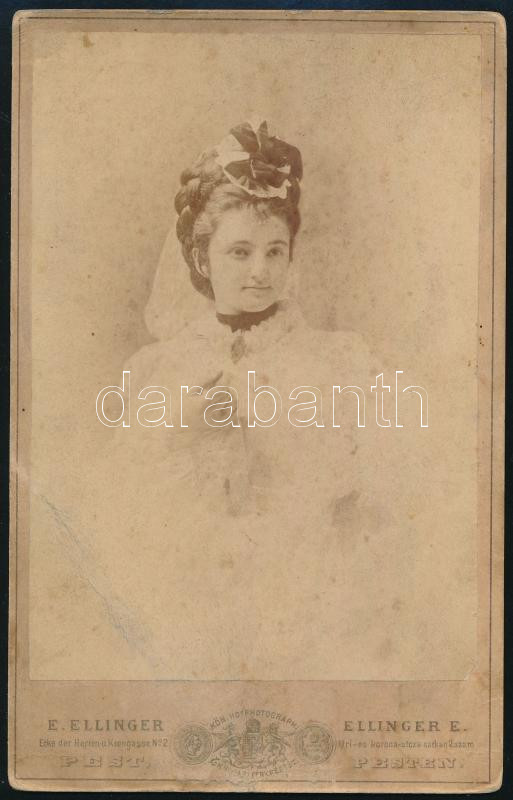 cca 1870 Erdeli Mariska, keményhátú fotó Ellinger Ede pesti műterméből... https://www.darabanth.com/de/467-Fernauktion/467.0/Fotografie/Foto~500022/cca-1870-Erdeli-Mariska-kemenyhatu-foto-Ellinger-Ede-pesti-mutermebol-feluleten-toresnyom-~II3156914