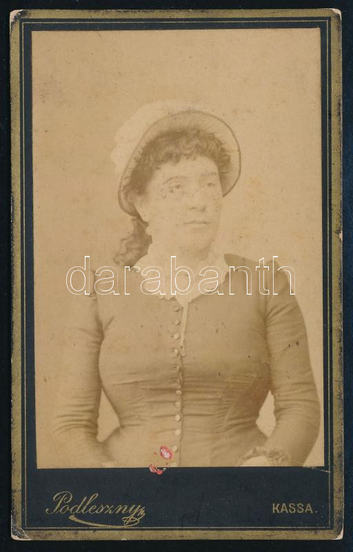 cca 1890 Hölgyportré, vizitkártya Podleszny András kassai műterméből, ... https://www.darabanth.com/de/467-Fernauktion/467.0/Fotografie/Foto~500022/cca-1890-Holgyportre-vizitkartya-Podleszny-Andras-kassai-mutermebol-10-5x6-5-cm~II3152221