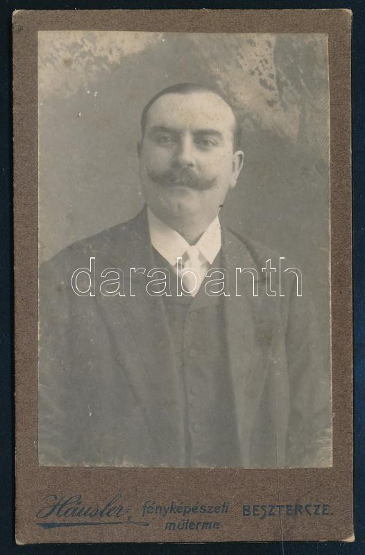 cca 1910 Férfiportré, keményhátú fotó Häusler besztercei műterméből, s... https://www.darabanth.com/de/467-Fernauktion/467.0/Fotografie/Foto~500022/cca-1910-Ferfiportre-kemenyhatu-foto-Hausler-besztercei-mutermebol-szecesszios-hatlappal-~II3132550