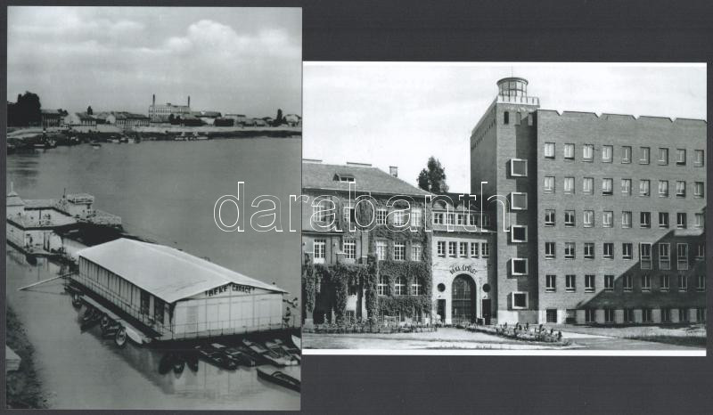 cca 1960 Szeged, ,,Béke épület" tetején csillagvizsgáló és ,,Béke garázs", azaz csónakház a Tiszán, 2 db modern nagyítás, jelzés nélkül, 21x15 cm és 15x21 cm