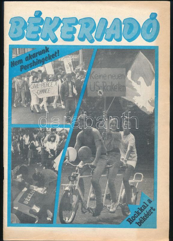 1983 Békeriadó. Az Országos Béketanács kiadványa. Szerk.: Sebes Tibor. Benne többek közt interjú Würtz Ádám grafikusművésszel, John Lennon dalszövegei, stb. Fekete-fehér fotókkal. Kiadói tűzött papírkötés, 48 p.