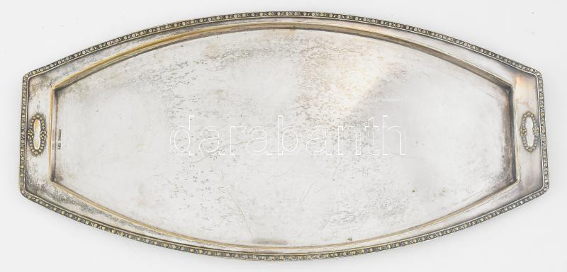 Beschreibung: Argentor szecessziós ezüstözött alpakka tálca. Jelzett, kopással, 34x17 cm
