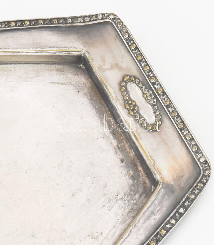 Argentor szecessziós ezüstözött alpakka tálca. Jelzett, kopással, 34x1... https://www.darabanth.com/de/467-Fernauktion/467.0/Kunst-Dokumente-andere-Sammelgebiete/Flohmarkt~500013/Argentor-szecesszios-ezustozott-alpakka-talca-Jelzett-kopassal-34x17-cm~II3154444