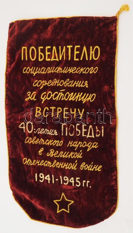 ca 1985 Szovjet verseny zászló a Nagy Honvédő Háború emlékére bársony ... https://www.darabanth.com/de/467-Fernauktion/467.0/Kunst-Dokumente-andere-Sammelgebiete/Flohmarkt~500013/ca-1985-Szovjet-verseny-zaszlo-a-Nagy-Honvedo-Haboru-emlekere-barsony-34x60-cm~II3151986