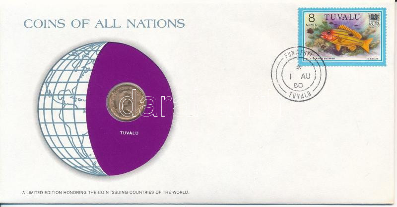 Tuvalu 1976. 1c "Nemzetek pénzérméi" felbélyegzett borítékban, bélyegzéssel T:AU