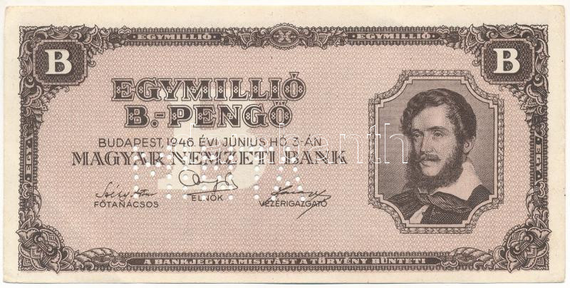 1946. 1.000.000BP hamis "MINTA" perforációval T:XF https://www.darabanth.com/de/467-Fernauktion/467.0/Numismatik/Ungarische-Banknoten~1500008/1946-1000000BP-hamis-MINTA-perforacioval-TXF~II3155131