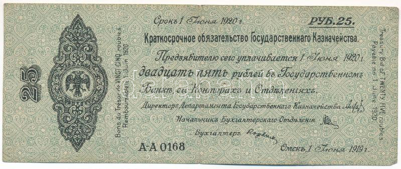 Beschreibung: Orosz Polgárháború / Szibéria és Urál / Ideiglenes Szibériai Igazgatás 1920. 25R "AA 0168" T:F Russian Civil War / Siberia & Ural / Siberian Provisional Administration 1920. 25 Rubles "AA 0168" C:F Krause P#S855