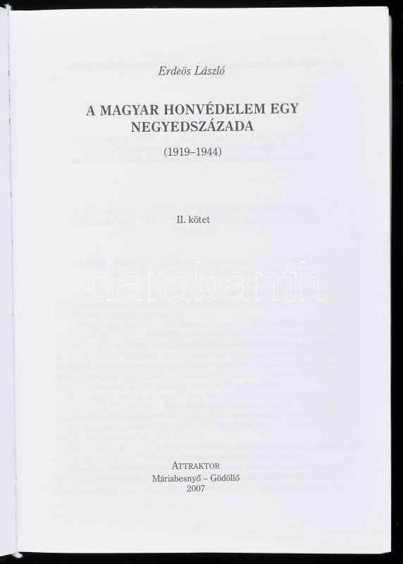 Erdeös László: A magyar honvédelem egy negyedszázada. (1919-1944). I-I... https://www.darabanth.com/de/468-Fernauktion/468.0/Bucher/Bucher-Militaria~1500027/Erdeos-Laszlo-A-magyar-honvedelem-egy-negyedszazada-1919-1944-I-II-kot-Mariabesnyo-Godollo-~II3166335