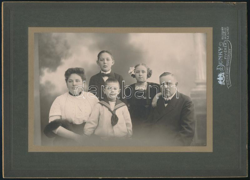 cca 1910 Családi portré, karton kasírozott fotó a Dunky műterméből, 12... https://www.darabanth.com/de/468-Fernauktion/468.0/Fotografie/Foto~1000025/cca-1910-Csaladi-portre-karton-kasirozott-foto-a-Dunky-mutermebol-12-5x19-cm~II3134857