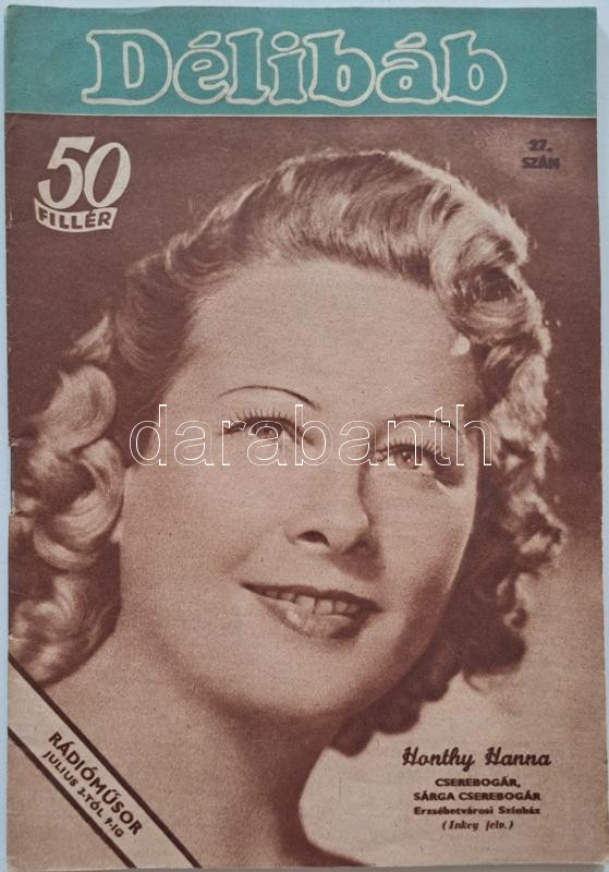1940-1944 Délibáb c. színházi folyóirat 10 db száma, a címlapokon Somo... https://www.darabanth.com/de/468-Fernauktion/468.0/Kunst-Dokumente-andere-Sammelgebiete/Drucksachen~2000104/1940-1944-Delibab-c-szinhazi-folyoirat-10-db-szama-a-cimlapokon-Somogyi-Erzsi-Szeleczky-Zita-~II3165072