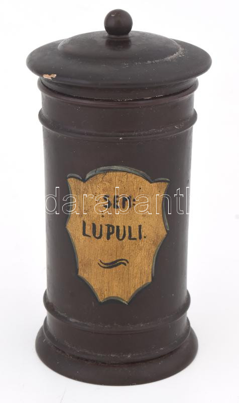 Antik fából készült gyógyszeres patikai tárolóedény fedéllel, festett ... https://www.darabanth.com/de/468-Fernauktion/468.0/Kunst-Dokumente-andere-Sammelgebiete/Flohmarkt~1000015/Antik-fabol-keszult-gyogyszeres-patikai-taroloedeny-fedellel-festett-Sem-Lupuli-felirattal-~II3168323