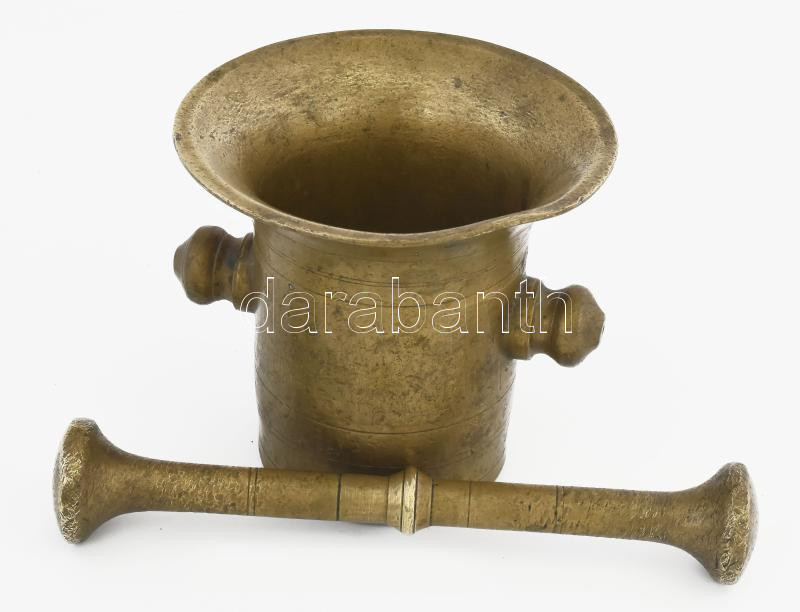 Bronz mozsár törővel. Kopott, m: 13 cm, törő h: 22 cm https://www.darabanth.com/de/468-Fernauktion/468.0/Kunst-Dokumente-andere-Sammelgebiete/Flohmarkt~1000015/Bronz-mozsar-torovel-Kopott-m-13-cm-toro-h-22-cm~II3165770
