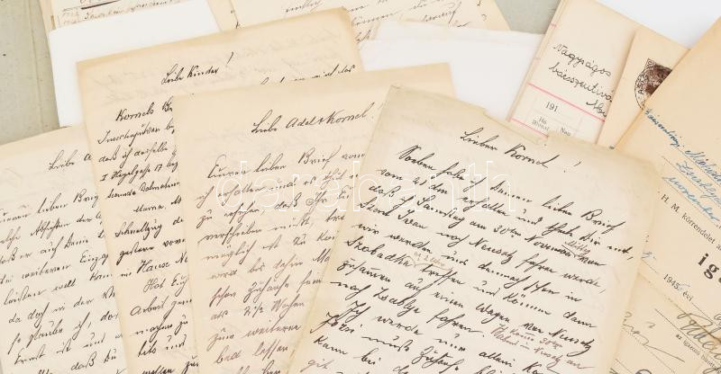 cca 1885-1945 Bácsszentiván(y)i báró Michailovits Kornél, Bács-Bodrog vármegye alispánjának iratanyaga, össz. kb. 35 db, többségében levelek szüleitől német nyelven, néhány elszámolás és számla + 1945 Fia Michailovits György honvéd százados igazolása, utóbbi szakadásokkal