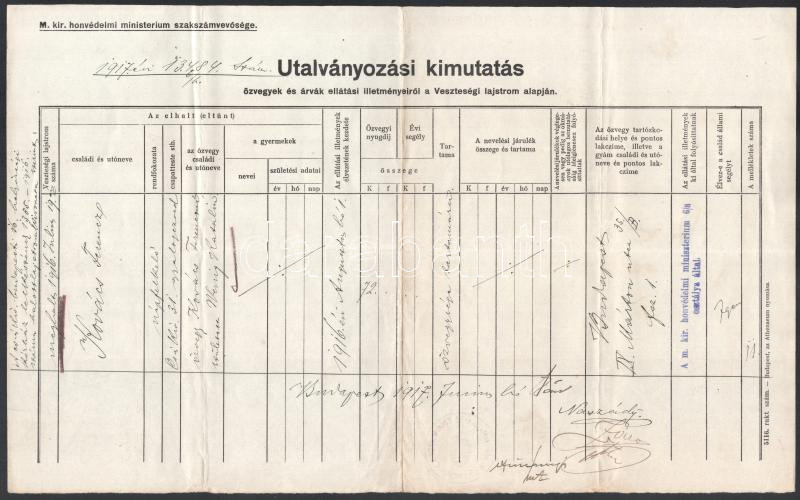 1917 Bp., utalványozási kimutatás özvegyek és árvák ellátási illetmény... https://www.darabanth.com/de/468-Fernauktion/468.0/Kunst-Dokumente-andere-Sammelgebiete/Militaria~1500008/1917-Bp-utalvanyozasi-kimutatas-ozvegyek-es-arvak-ellatasi-illetmenyeirol-a-vesztesegi-lajstrom~II3167790