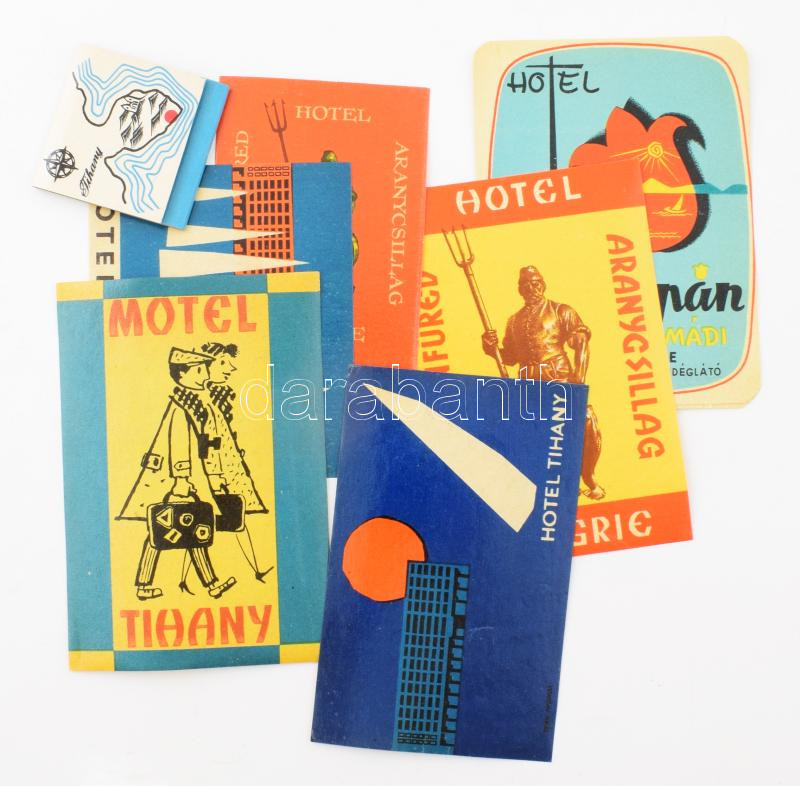 cca 1950 7 db magyar hotelcímke, bőröndcímke, gyufa balatoni szállókbó... https://www.darabanth.com/de/468-Fernauktion/468.0/Kunst-Dokumente-andere-Sammelgebiete/Schiffe-Plattensee~2000102/cca-1950-7-db-magyar-hotelcimke-borondcimke-gyufa-balatoni-szallokbol-Balatonfured-Tihany-~II3167420