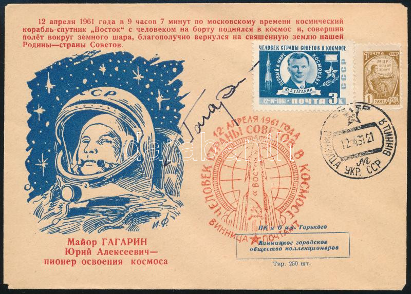 Jurij Alekszejevics Gagarin (1934-1968) szovjet űrhajós autográf aláírása alkalmi borítékon / Autograph signature of Yuriy Alekseyevich Gagarin (1934-1968) Soviet astronaut on special cover