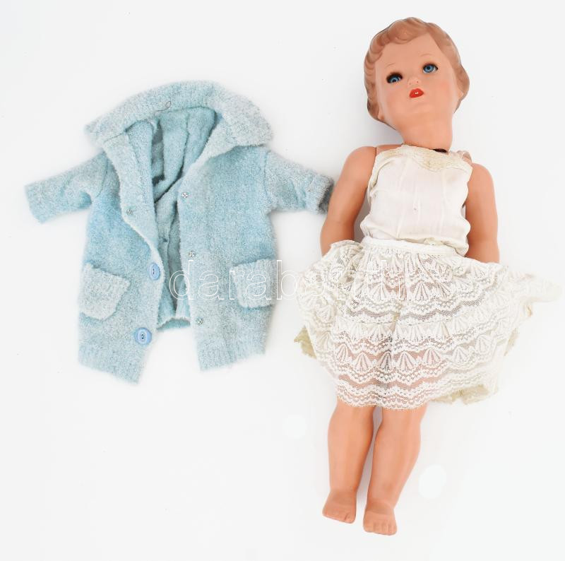 Schildkröte baba, ruhával, sírós jelzett, m: 64 cm https://www.darabanth.com/de/468-Fernauktion/468.0/Kunst-Dokumente-andere-Sammelgebiete/Spielzeuge~1000016/Schildkrote-baba-ruhaval-siros-jelzett-m-64-cm~II3165858
