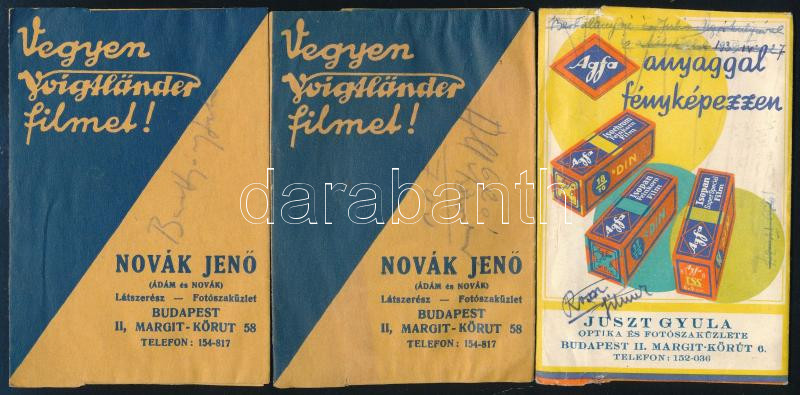 Novák Jenő és Juszt Gyula, Bp. II. Margit körúti optikusok fotótasakja... https://www.darabanth.com/de/468-Fernauktion/468.0/Kunst-Dokumente-andere-Sammelgebiete/Werbungen~2000099/Novak-Jeno-es-Juszt-Gyula-Bp-II-Margit-koruti-optikusok-fototasakjai-3-db~II3164383