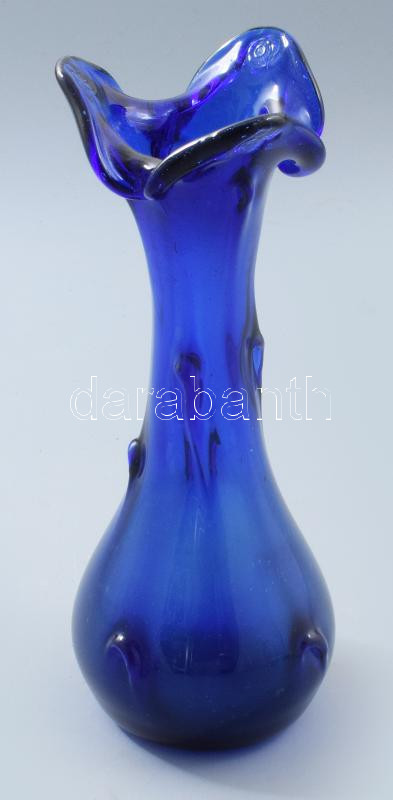 Beschreibung: Murano királykék üvegváza. Anyagában színezett, hibátlan, m: 26,5 cm
