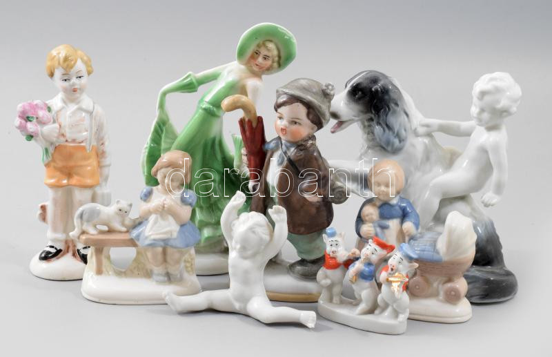 Beschreibung: 8 db német porcelán figura. Kézzel festett, jelzett, hibátlanok m: 14 cm-ig