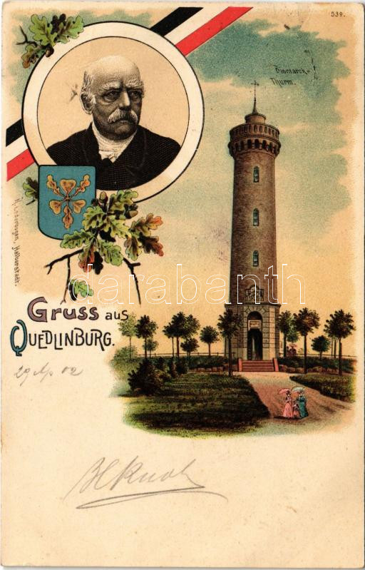 1902 Quedlinburg, Bismarck Thurm. R. Lederbogen Art Nouveau, floral, l... https://www.darabanth.com/de/469-Fernauktion/469.0/Ansichtskarten/Deutschland~1500090/1902-Quedlinburg-Bismarck-Thurm-R-Lederbogen-Art-Nouveau-floral-litho-EB~II3173458