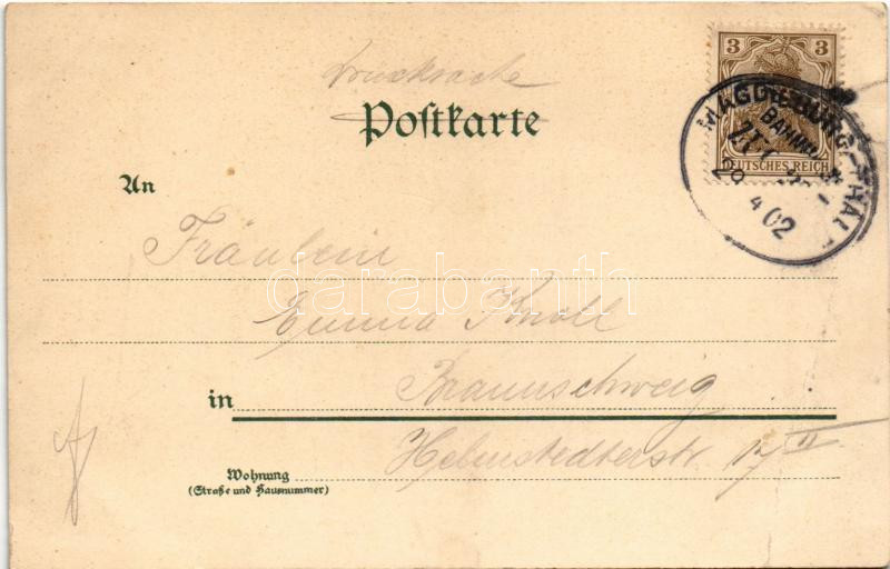 Beschreibung: 1902 Quedlinburg, Bismarck Thurm. R. Lederbogen Art Nouveau, floral, litho (EB)