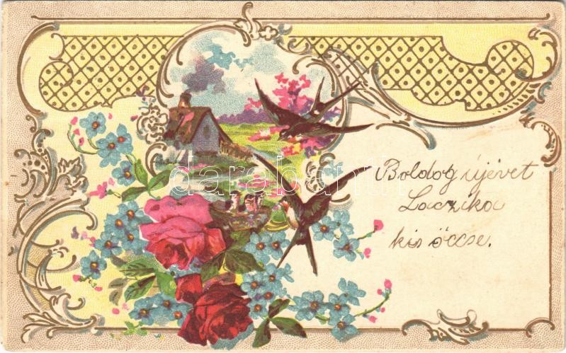 1904 Art Nouveau, floral, Emb. litho greeting card (EB) https://www.darabanth.com/de/469-Fernauktion/469.0/Ansichtskarten/GruC39Fkarten-Feste~1500055/1904-Art-Nouveau-floral-Emb-litho-greeting-card-EB~II2404647