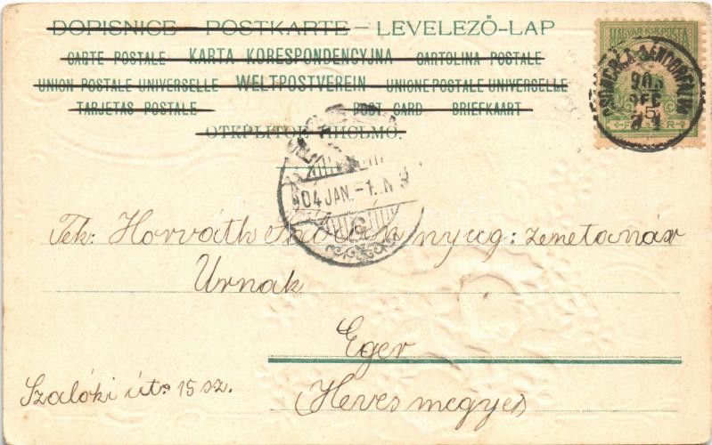 Beschreibung: 1904 Art Nouveau, floral, Emb. litho greeting card (EB)