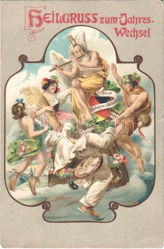Beschreibung: Heilgruss zum Jahreswechsel! Bund Deutschen in Böhmen / New Year greeting art postcard. litho s: H. Kaufmann (fa)