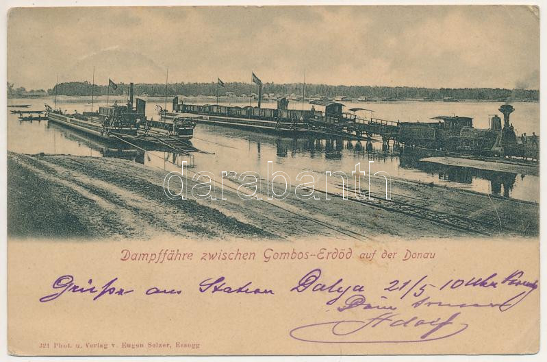 1902 Dálya, Dalja, Dalj; Gőzkomp Gombos és Erdőd között a Dunán, gőzmozdony kompra állítása / Dampffähre zwischen Gombos-Erdőd auf der Donau / steam ferry with freight train between Bogojevo and Erdut on the Danube, locomotive (EK)