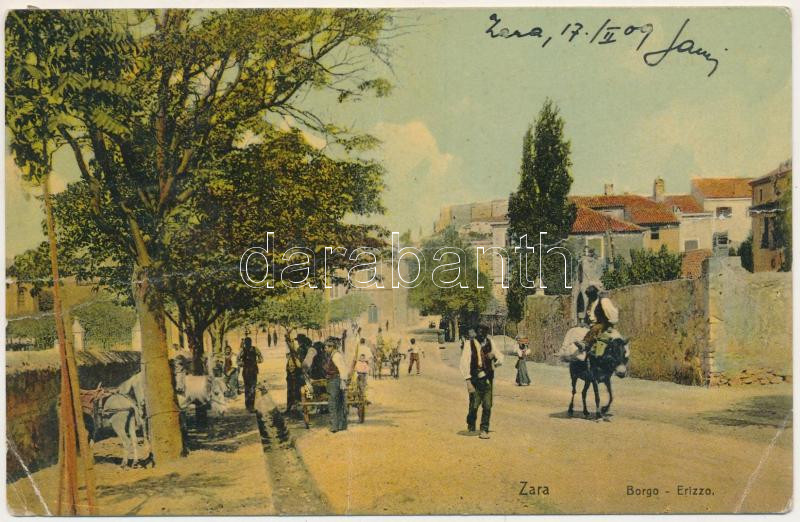 1909 Zadar, Zara; Borgo Erizzo / street view (ázott / wet damage) https://www.darabanth.com/de/469-Fernauktion/469.0/Ansichtskarten/Kroatien~1500008/1909-Zadar-Zara-Borgo-Erizzo-street-view-azott-wet-damage~II3173011