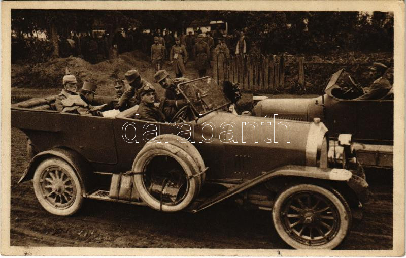 Beschreibung: Der Kaiser nimmt in Kozowa Situationsmeldungen entgegen / WWI Austro-Hungarian K.u.K. military, Charles I of Austria in automobile (EK)