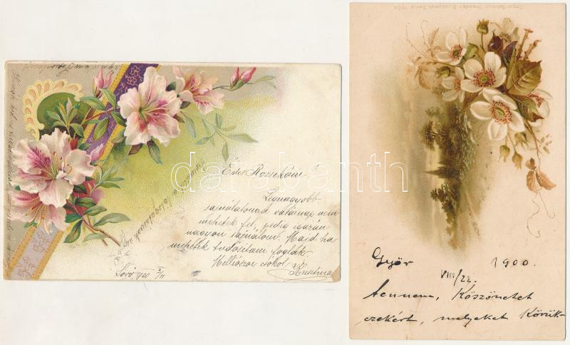 2 db RÉGI virágos litho üdvözlő motívum képeslap / 2 pre-1945 flower g... https://www.darabanth.com/de/469-Fernauktion/469.0/Ansichtskarten/Postkartensammlungen-Lose~1500002/2-db-REGI-viragos-litho-udvozlo-motivum-kepeslap-2-pre-1945-flower-greeting-motive-postcard~II3172259