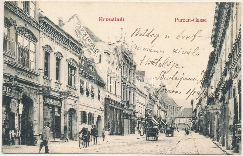 1907 Brassó, Kronstadt, Brasov; Kapu utca, Hartdegen, Ludwig Miess, Fr... https://www.darabanth.com/de/469-Fernauktion/469.0/Ansichtskarten/Siebenburgen~1500005/1907-Brasso-Kronstadt-Brasov-Kapu-utca-Hartdegen-Ludwig-Miess-Friedrich-Bahmuller-uzlete-H~II3172797