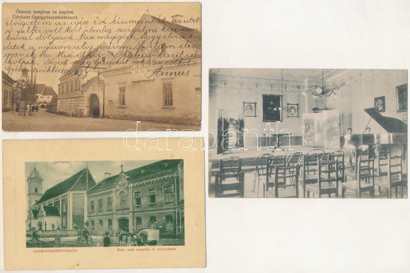 Gyergyószentmiklós, Gheorgheni; - 6 db régi képeslap (Fogarassy tanintézet, örmény templom és paplak, leány iskola, Gyilkos-tói vendéglő, őszi káposzta vásár, piac) / 6 pre-1945 postcards (schools, Armenian church and rectory, restaurant, autumn cabbage market)