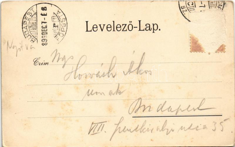 1899 (Vorläufer) Érsekújvár, Nové Zámky; Szent Ferencrendi templom, Kórház, Kossuth Lajos tér. Conlegner J. és Fia kiadása / Franciscan church, hospital, square. Art Nouveau, floral (Rb)