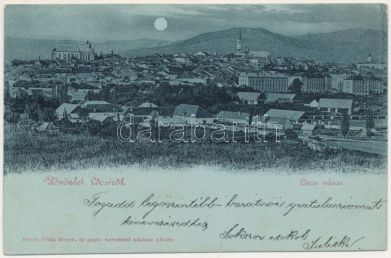 1900 Lőcse, Levoca; látkép este. Braun Fülöp kiadása / general view at... https://www.darabanth.com/de/469-Fernauktion/469.0/Ansichtskarten/Slowakei~1500006/1900-Locse-Levoca-latkep-este-Braun-Fulop-kiadasa-general-view-at-night-azott-wet-dam~II3175625